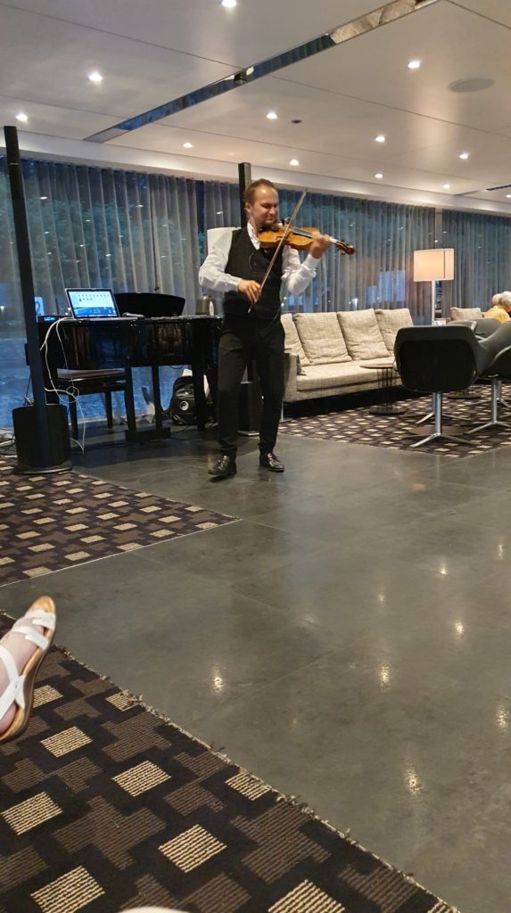 Last night’s dinner at Portobello was fantastic. Every course was delicious and superbly matched with Italian wines. We finished with limoncello of course and then listened to a wonderful violinist in the lounge. The city then put on a fireworks display (something to do with river celebration). We were too tired to stay up and watch it.